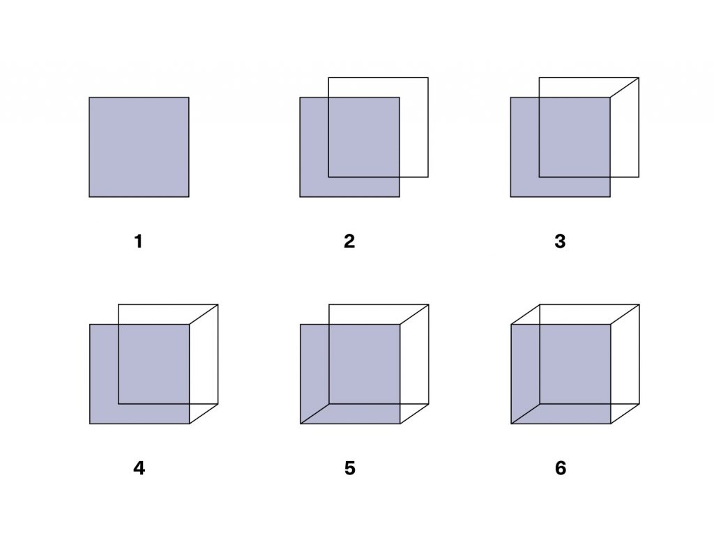 Um unseren Verstand zu täuschen, reichen zwei Quadrate und vier Linien. Hier sehen Sie, wie die Illusion in sechs Schritten entsteht: